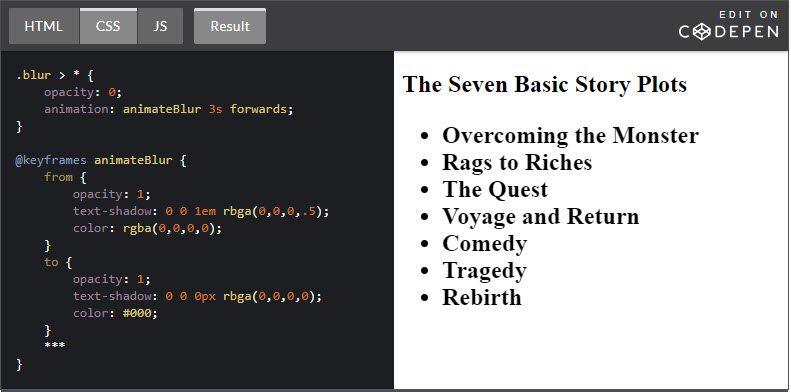 Dabble with the timing and other attributes and see what you come up with!